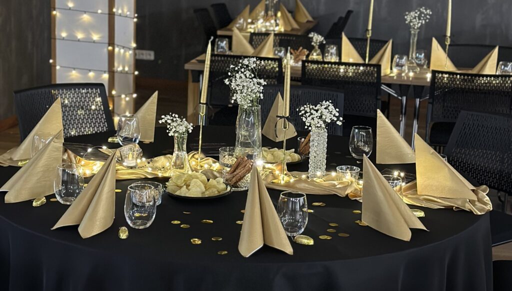 Po odsouhlasení návrhu zahájíme přípravu dekorací. Připravujeme květinová aranžmá, světelné dekorace, tematické prvky, textilie a další stylové doplňky. Následuje samotné dekorování a aranžování výzdoby, kdy dbáme na precizní provedení, jednotný styl a elegantní výsledek.